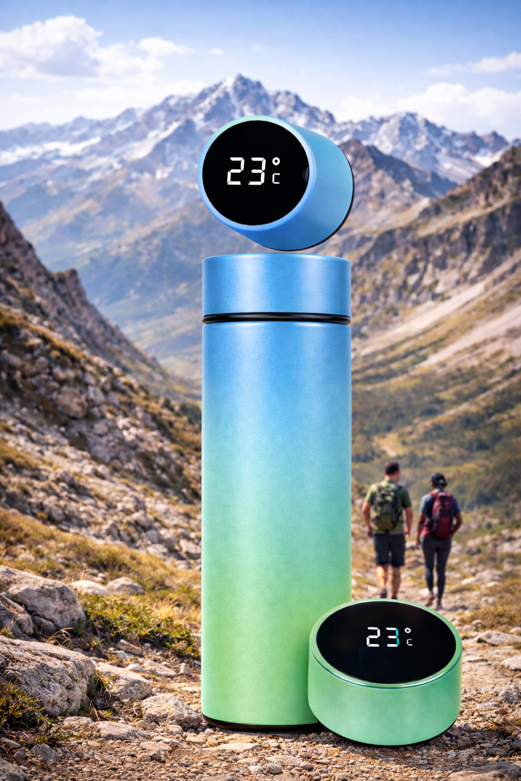 Soft Touch RVS Thermos Drinkfles – Herbruikbaar & Geïsoleerd met Temperatuurindicator, 500ml
